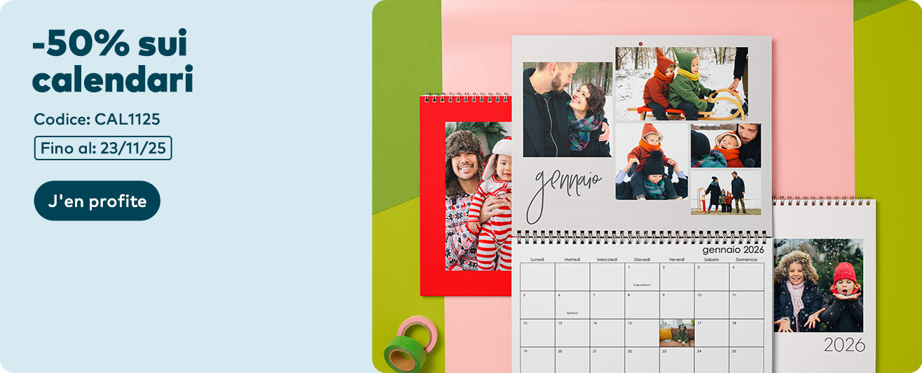 Vivi un 2025 di sorrisi. Scegli un calendario personalizzato con le foto che ami.