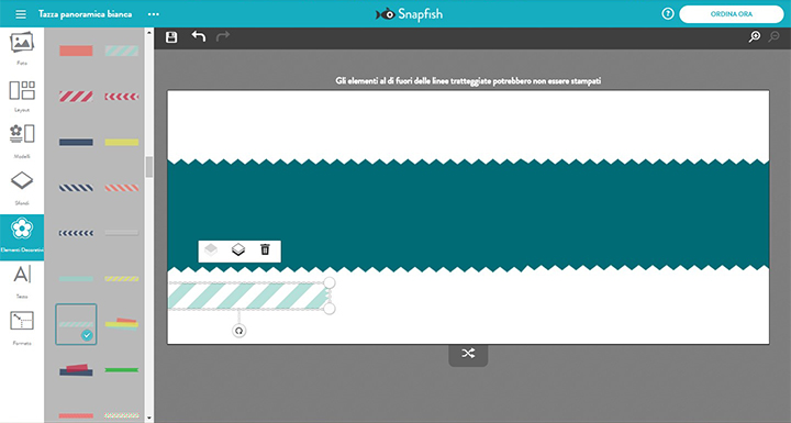 Completa il design e clicca sul bottone “ORDINA ORA” per vedere come sarà l’immagine sulla tazza una volta stampata.